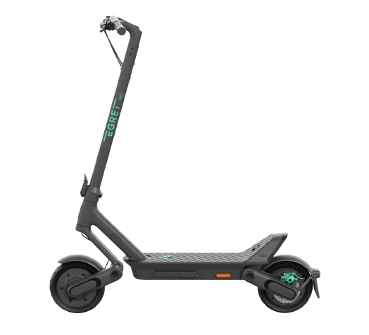 Model Egret Ey! 1 ponúka výkonové parametre, ktoré ho radia medzi najvýkonnejšie mestské e-kolobežky vo svojej kategórii. Menovitý výkon 500 W v kombinácii so špičkovým výkonom 1 512 W prináša dynamickú jazdu, rýchle rozjazdy a dostatok sily aj pri jazde do miernych kopcov. Krútiaci moment 40 Nm patrí medzi najvyššie v danej triede a pre výrazné zrýchlenie je k dispozícii aj športový režim Sport či extra výkonný režim Extreme. Energiu dodáva vysokokapacitná batéria 46,8 V / 14,5 Ah (678 Wh), ktorá zabezpečuje dojazd až 65 km, čo je v meste viac než dostatočné. Nabíjanie trvá 7–8 hodín, takže stačí pripojiť kolobežku počas noci. Model ponúka aj praktický peší režim 6 km/h, vhodný pri vedení kolobežky popri sebe. Stabilitu výkonu dopĺňajú 10″ bezdušové pneumatiky, ako aj plné odpruženie so zdvihom 61 mm, ktoré umožňuje plynulú jazdu aj v náročnejších mestských podmienkach.