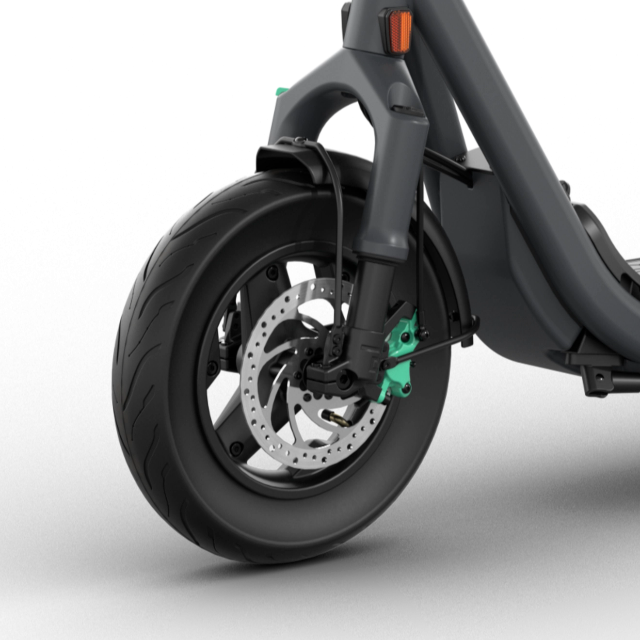 Bezpečnosť je pri Egret GT na extrémne vysokej úrovni. O maximálnu kontrolu nad jazdou sa starajú hydraulické kotúčové brzdy s 160 mm kotúčmi, ktoré poskytujú stabilné, presné a okamžité brzdenie. 13" pneumatiky zabezpečujú skvelý kontakt s povrchom a kratšiu brzdnú dráhu. Osvetlenie je riešené profesionálne – 80 lux OSRAM LED svetlo, zadná LED s brzdovou funkcionalitou a integrované smerovky výrazne zvyšujú viditeľnosť v noci aj za zlého počasia. Rám je navrhnutý tak, aby zvládol zaťaženie 150 kg bez straty stability. Elektronickú bezpečnosť zabezpečuje NFC odomykanie, alarm a imobilizér, ktoré chránia kolobežku pri každom zaparkovaní. Funkcia Apple Find My umožňuje neustále sledovanie polohy zariadenia, čo značne znižuje riziko odcudzenia. Vodeodolnosť IPX5 umožňuje jazdu aj v daždi, zatiaľ čo batéria s certifikáciou IPX7 vydrží aj krátkodobé ponorenie vo vode. Vďaka 62 Nm krútiacemu momentu je akcelerácia okamžitá a bezpečná aj v náročných podmienkach.