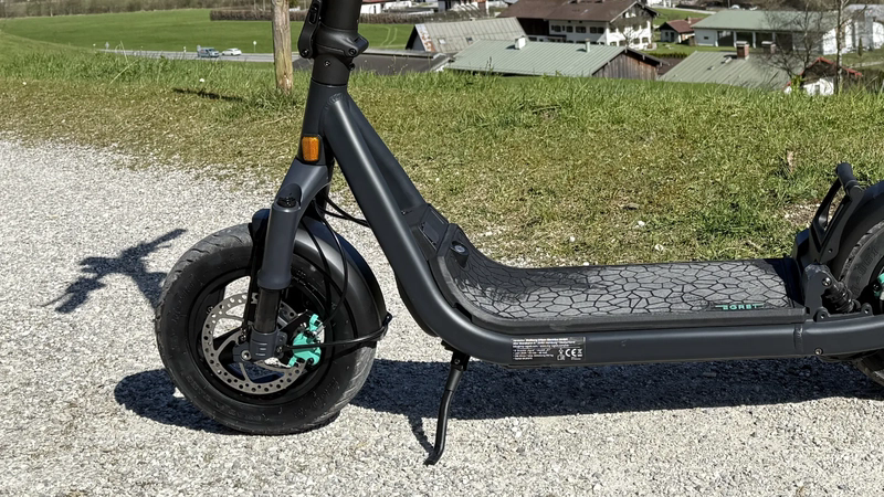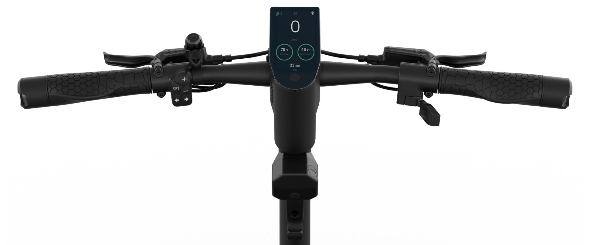 Egret GT vyniká svojím robustným, no zároveň moderným dizajnom. V rozloženom stave dosahuje rozmery 136 × 67 × 128 cm, v zloženom iba 136 × 60 cm, čo výrazne zjednodušuje manipuláciu a skladovanie. Stúpadlo s veľkorysými 17 × 46 cm poskytuje stabilný postoj a zároveň ukrýva rýchlovymeniteľnú batériu, čo je jedna z najpraktickejších funkcií tohto modelu. Dvojité odpruženie – predná olejová upside-down RST vidlica so zdvihom 5 cm a zadný nastaviteľný tlmič – zabezpečuje komfort aj na nerovnom povrchu. Kolobežka je vybavená 13" pneumatikami s oceľovou ochranou proti prepichnutiu, ktoré zvyšujú stabilitu pri vyšších rýchlostiach. Osvetlenie je prémiové: predné LED OSRAM 80 lux, zadné LED svetlo s brzdovým efektom, a integrované smerovky vpredu aj vzadu. Ovládanie dopĺňa 3,5" TFT displej, ktorý jasne zobrazuje rýchlosť, kapacitu batérie, režim jazdy či smerovky. Medzi užitočné funkcie patrí aj NFC odomykanie, elektronický alarm, imobilizér a kompatibilita s Apple Find My, čo výrazne znižuje riziko krádeže. Vodeodolnosť IPX5 pre kolobežku a IPX7 pre batériu dopĺňa mimoriadnu odolnosť celého systému.