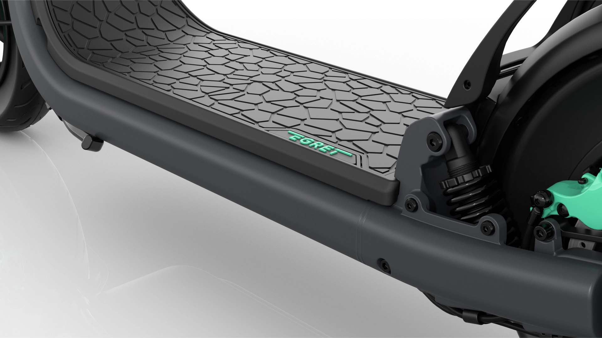 Egret GT je poháňaný motorom so špičkovým výkonom 1 620 W, ktorý poskytuje impozantnú akceleráciu a umožňuje stabilnú jazdu aj v náročnom teréne alebo pri vyššom zaťažení. Krútiaci moment 62 Nm zabezpečuje silný ťah do kopca a rýchle reagovanie na pokyny jazdca. Batéria pod stúpadlom má kapacitu 15 Ah alebo 20 Ah pri napätí 47,45 V, čo umožňuje dojazd 75 km s menšou batériou a až 100 km s väčšou. Nabíjanie trvá iba 5 hodín cez 3 A nabíjačku, čo je ideálne pre každodenné používanie. Vďaka 13" pneumatikám a dvojitému odpruženiu – prednému RST so zdvihom 5 cm a zadnému nastaviteľnému tlmiču – je jazda komfortná aj pri vyšších rýchlostiach. Výkon je pritom plne pod kontrolou jazdca cez kvalitný 3,5" TFT displej, ktorý zobrazuje všetky potrebné hodnoty pre bezpečnú a plynulú jazdu.