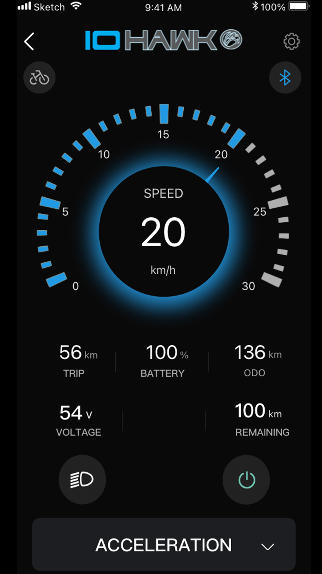 Pri navrhovaní úplne novej IO HAWK Elite X riadili filozofiou, aby bola kolobežka užívateľsky čo najpríjemnejšia. Výsledkom je kompaktný, no zároveň skvele vybavený stroj s takmer bezúdržbovou konštrukciou. Stredobodom vrchnej časti IO HAWKu Elite X je zabudovaný LCD displej. Na ňom nájdete všetky potrebné údaje o jazde. IO HAWK vyvinul pre svojich zákazníkov mobilnú aplikáciu, v rámci ktorej môžete napríklad spárovať NFC čip a zamknúť tak svoj stroj aj na diaľku. Imobilizér je nastaviteľný až na 120 minút (blokovanie motora a blikajúce svetlá pri pohybe). Po pripojení sa cez Bluetooth na váš smartfón dokážete na kolobežke nastaviť pokročilé možnosti jazdy, vypnúť/zapnúť jeden z motorov, či ovládať osvetlenie a nastavenie spôsobu zrýchlenia (kickstart). To všetko môžete samozrejme aj cez riadiacu jednotku.