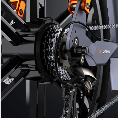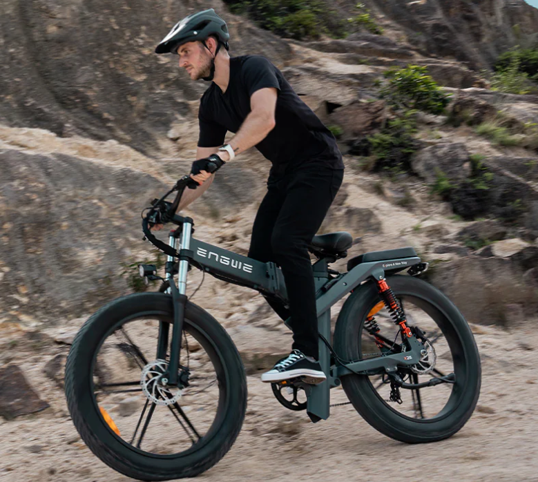 ENGWE X26 je výkonný elektrický bicykel s 1200 W peak motorom, dojazdom až 150 km, trojitým odpružením, hydraulickými brzdami a 26×4.0″ fat pneumatikami – ideálny pre náročný terén aj mestské cesty.