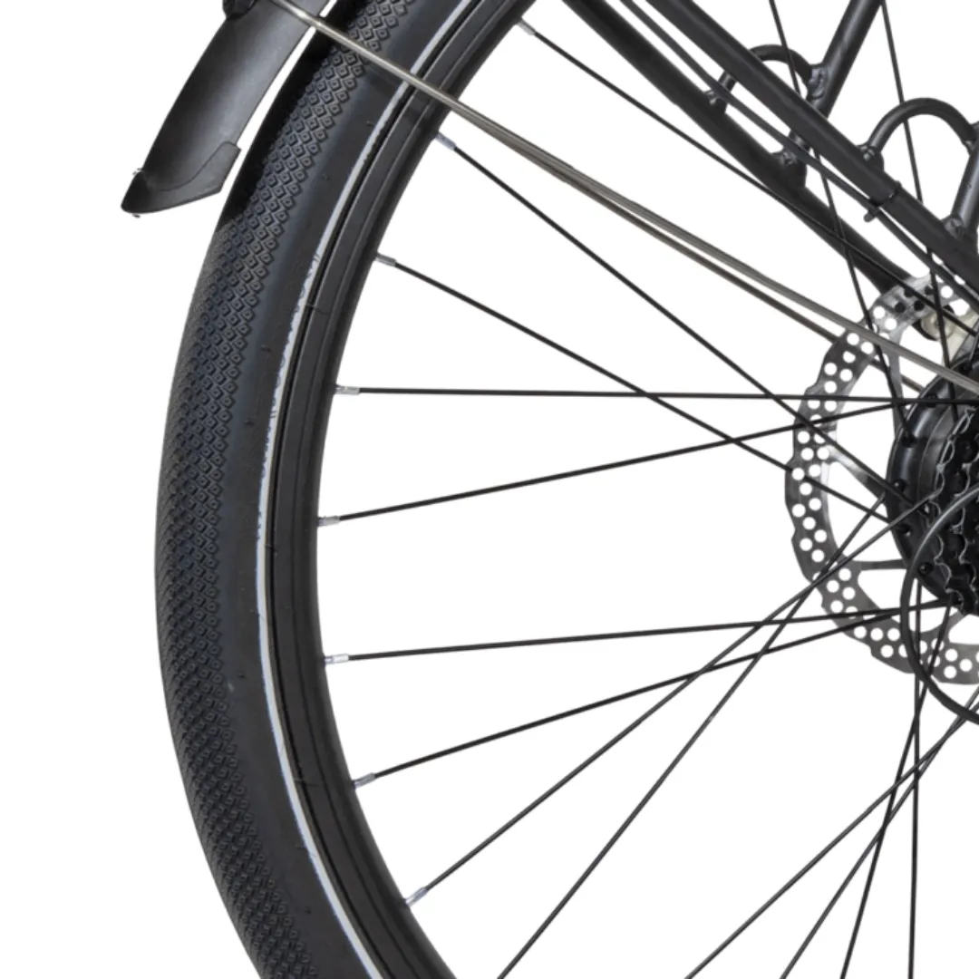 Srdcom bicykla MS ENERGY C40 je tichý a efektívny 250 W zadný nábojový motor napájaný 36 V/10 Ah (360 Wh) lítiovou batériou, ktorá je plne integrovaná do rámu a zároveň ľahko vyberateľná. Motor poskytuje plynulú asistenciu pri šliapaní a dosahuje maximálnu rýchlosť 25 km/h, čo je ideálne na mestské použitie. Dojazd až 60 km závisí od zvoleného režimu asistencie, terénu a hmotnosti jazdca. Nabíjanie trvá len 4–6 hodín, takže bicykel môžete nabiť cez noc a ráno vyraziť na cestu s plnou batériou. 8-rýchlostný prevodový systém Shimano umožňuje optimálne prispôsobenie jazdy rôznym podmienkam, či už ide o prudšie stúpania, rovinky alebo klesania. Nízka hmotnosť 21 kg prispieva k lepšiemu zrýchleniu a ľahšiemu manévrovaniu v mestskom prostredí.