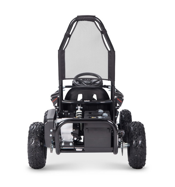 Jednou z najdôležitejších vlastností LAMAX eBuggy UTV50 Long Range je dôraz na bezpečnosť. Kotúčová hydraulická brzda na zadnej náprave zaručuje spoľahlivé zastavenie aj pri maximálnej rýchlosti 30 km/h, čo je kľúčové pri jazde v teréne. Tri rýchlostné režimy 10 / 20 / 30 km/h umožňujú rodičom prispôsobiť výkon schopnostiam dieťaťa, a to aj formou uzamknutia, aby sa predišlo príliš rýchlej jazde. Stabilitu podporujú kvalitné pneumatiky a odpruženie, ktoré znižuje riziko nárazov a straty kontroly. Motor s výkonom 1000 W poskytuje dostatočnú silu na zvládnutie miernych stúpaní a nerovností, pričom napájanie zabezpečuje 48 V / 20 Ah olovená batéria. Tá ponúka dojazd až 30 km alebo približne 4 hodiny jazdy pri ideálnych podmienkach. Výrobca však upozorňuje, že v reálnej prevádzke – pri vyššej hmotnosti jazdca, častých štartoch či jazde do kopca – môže byť dojazd nižší, v niektorých prípadoch až o 50 %. Aj napriek tomu ide o veľmi solídny výkon v porovnaní s konkurenciou. Vďaka polohovateľnému sedadlu, bezpečnostnému pásu a možnosti jazdy vpred aj vzad je ovládanie buginy intuitívne a bezpečné aj pre menej skúsených vodičov.